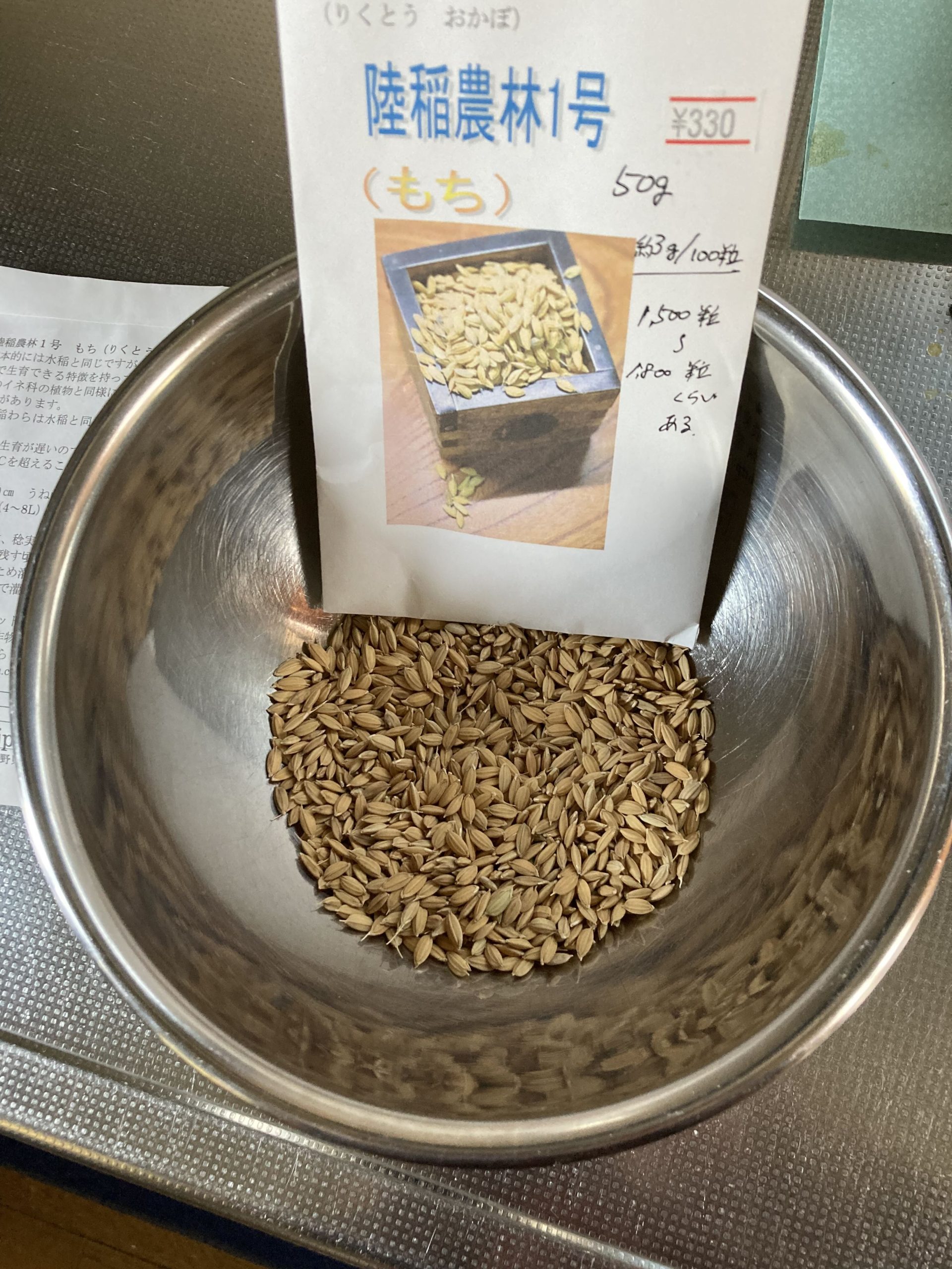 陸稲(おかぼ)の種籾(たねもみ)は松本市にある「つる新種苗」で日本で作った固定種を購入。